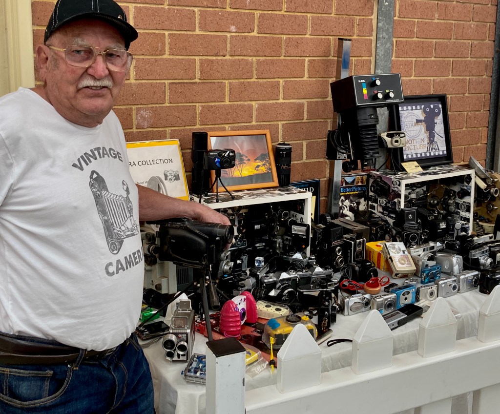 Enthusiasts like stallholder Noel Wilton displayed their passions. Noel collects machinery and vintage cameras. He even has a museum on his hobby farm at Bejoording, not far from Toodyay. If you’re heading out that way you’ll recognise it by the giant ‘scrap art’ motorcycle on the property. He’s been collecting cameras for “quite a few years now” and only displayed a small part of his collection at the show.