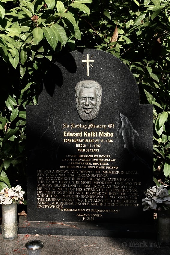 It shouldn’t surprise me that Eddie Mabo’s place on the beach is so humble. The native title case was never about the acquisition of property. At least not from Mabo’s point of view. During the High Court case in ’92, other Islanders tried to argue the point on who owned what, which piece of land belonged to whom, and challenged Mabo over his land claim. Which only served to bolster his case against the crown. His point was that a system of land ownership existed long before the arrival of the markay, or white man, in Australia. During the final hearings, no-one could argue that the Meriam people did not cultivate the soil, for as Justice Brennan noted, they were devoted gardeners. And it would be hard to argue that the Murray Islanders’ relationship to their lands was not proprietary. The evidence showed they owned land as individuals and as families, and had clearly demarcated property boundaries.