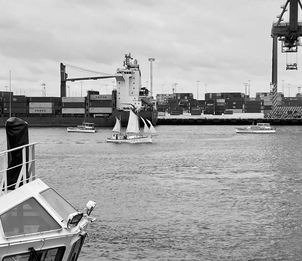 Alongside a huge glossy cruise ship, tough little tugs, car carrying and naval vessels, wooden boats were a major attraction at Fremantle Port’s Maritime Day 2022. A flotilla of handmade vessels were on show, some static, others motoring or sailing.