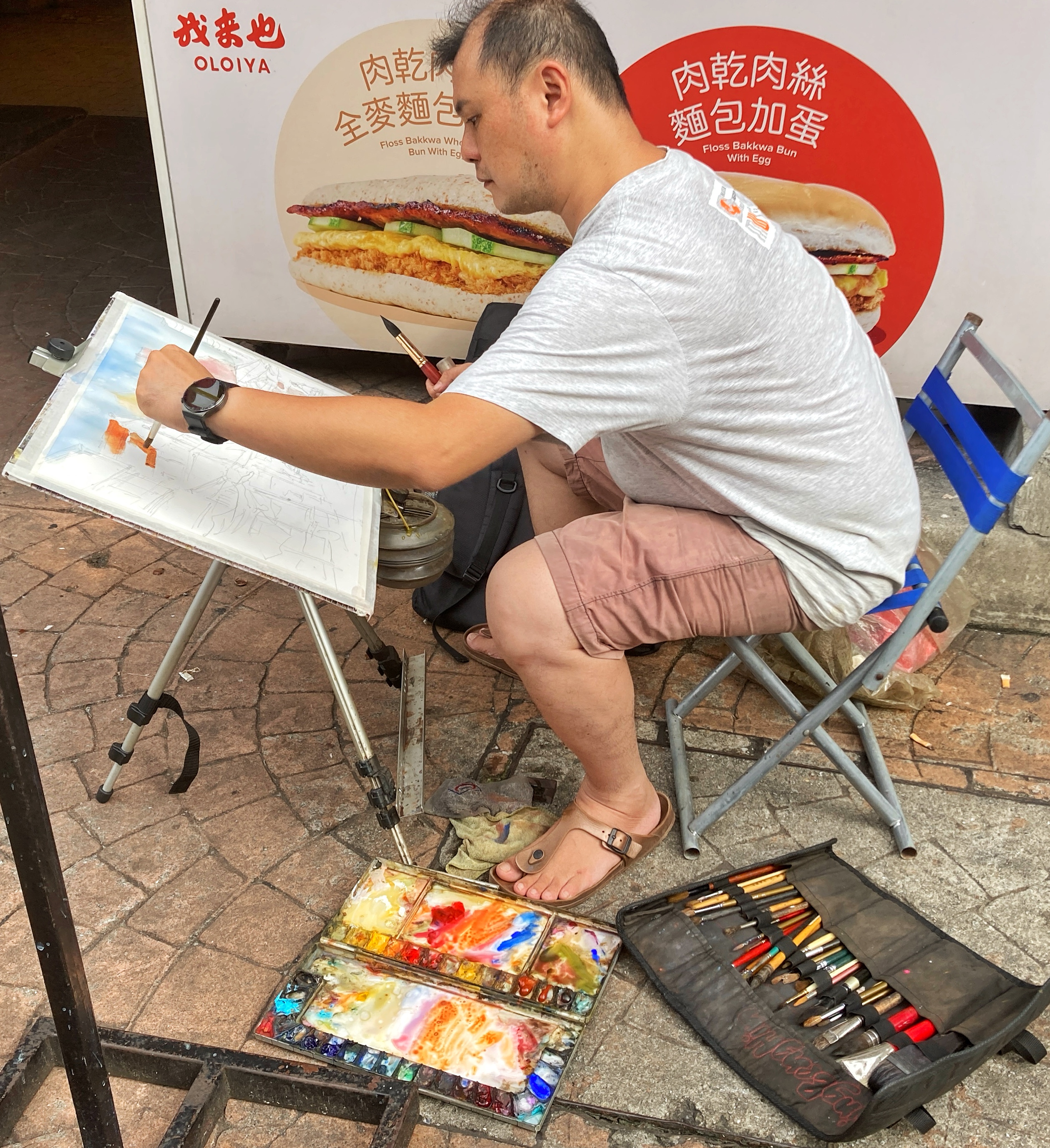 Since then we have photographed plein air artists in Malaysia and Penang. The attraction is obvious: fresh air, common interest, inspiring locations and no minimum skill level required to join in.